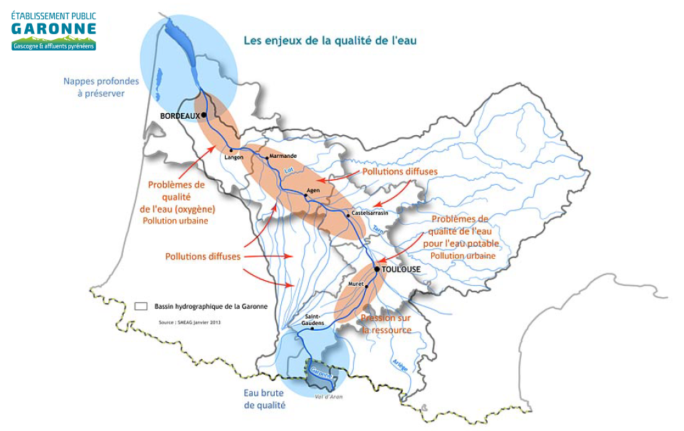 L'Etablissement Public Garonne, Gascogne et affluents pyrénéens intervient au travers d'actions concertées qui participent ainsi l'appréhension de la qualité de l’eau de la Garonne et de ses affluents :